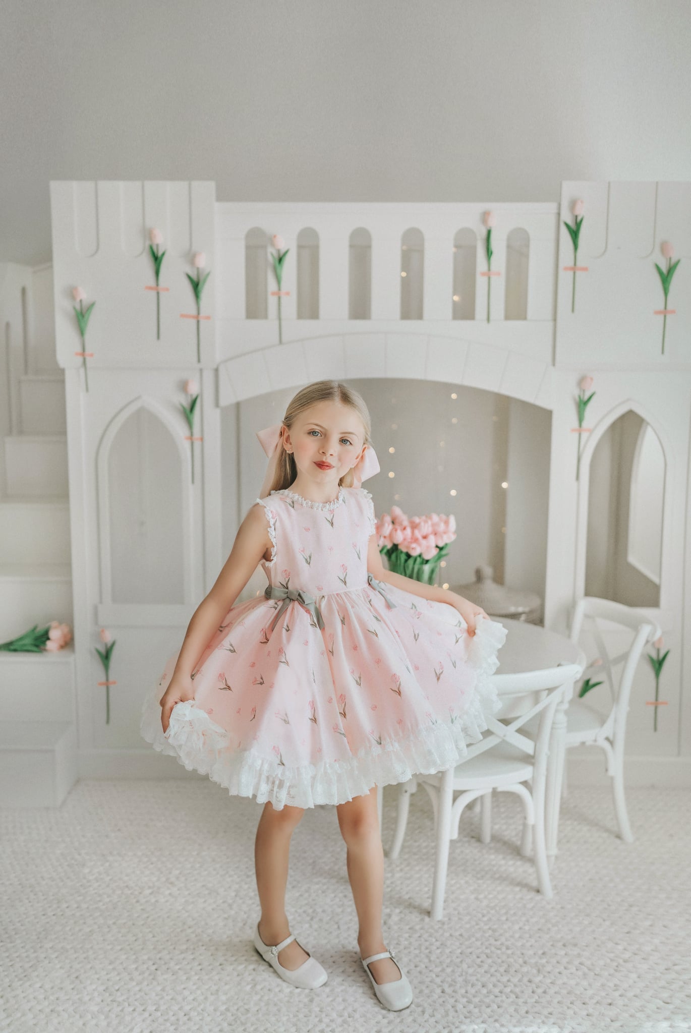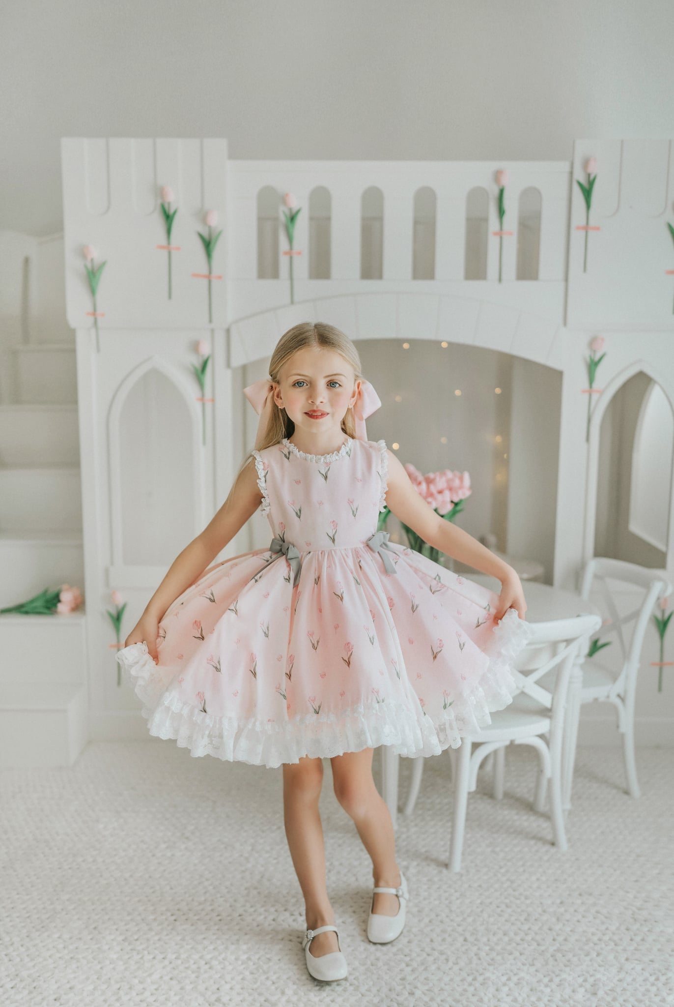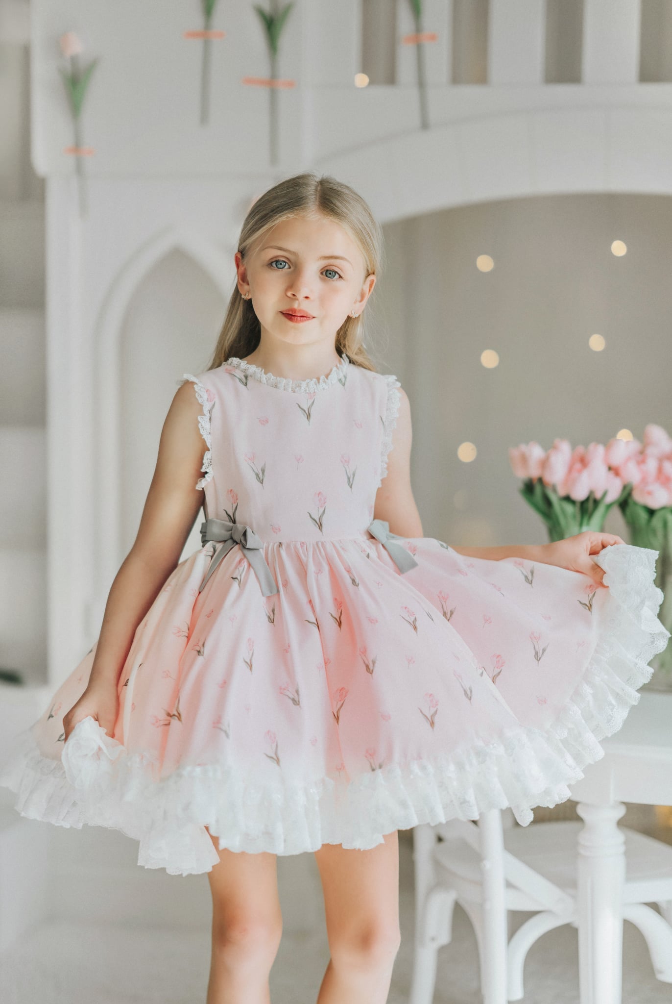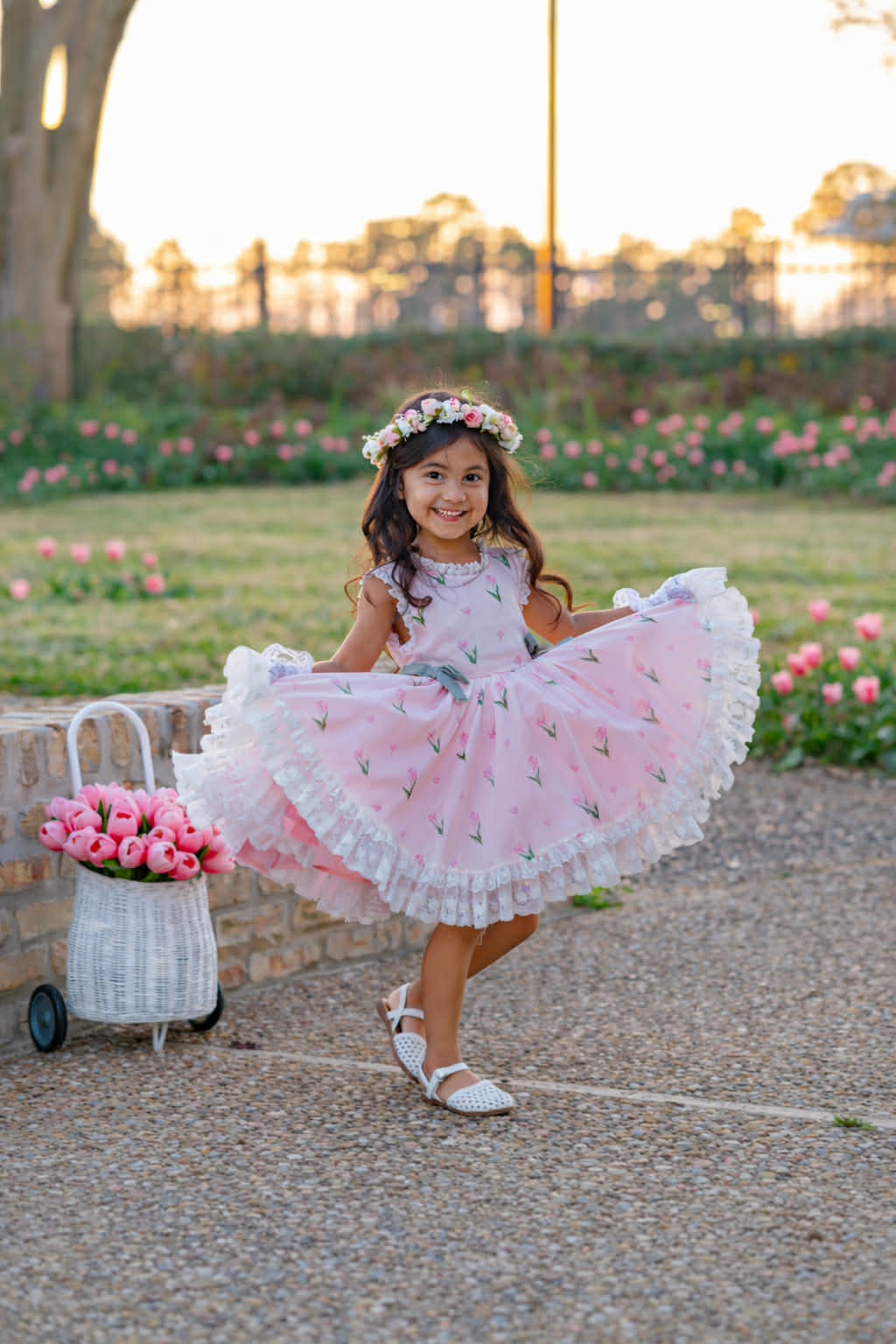 Tulips Garden Dress: Made of chiffon fabric. Bloomers included.