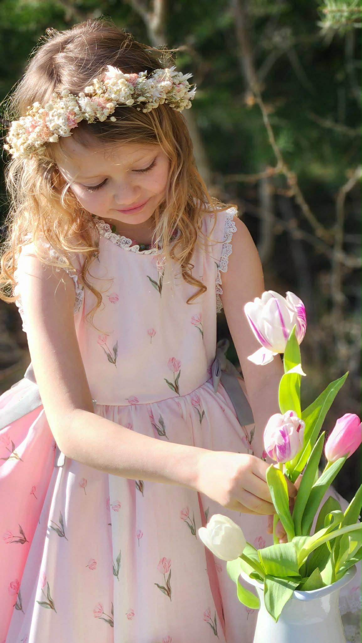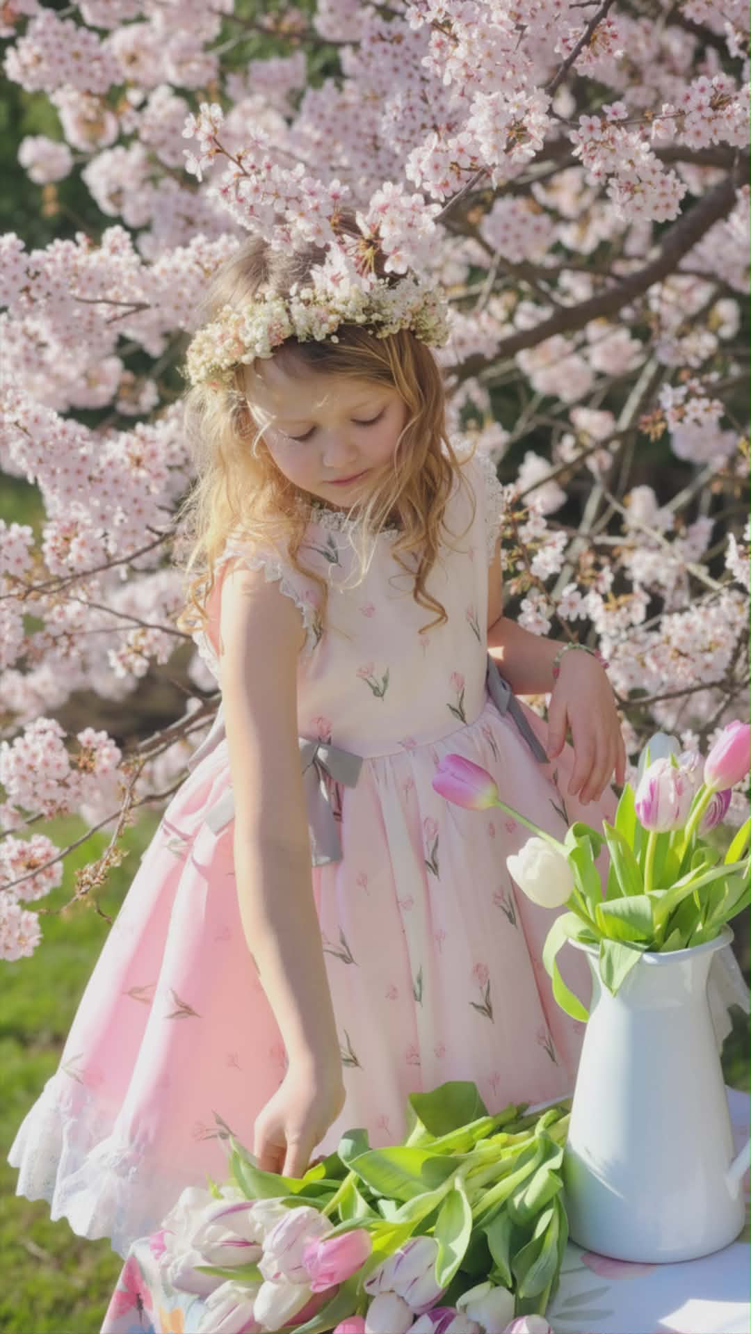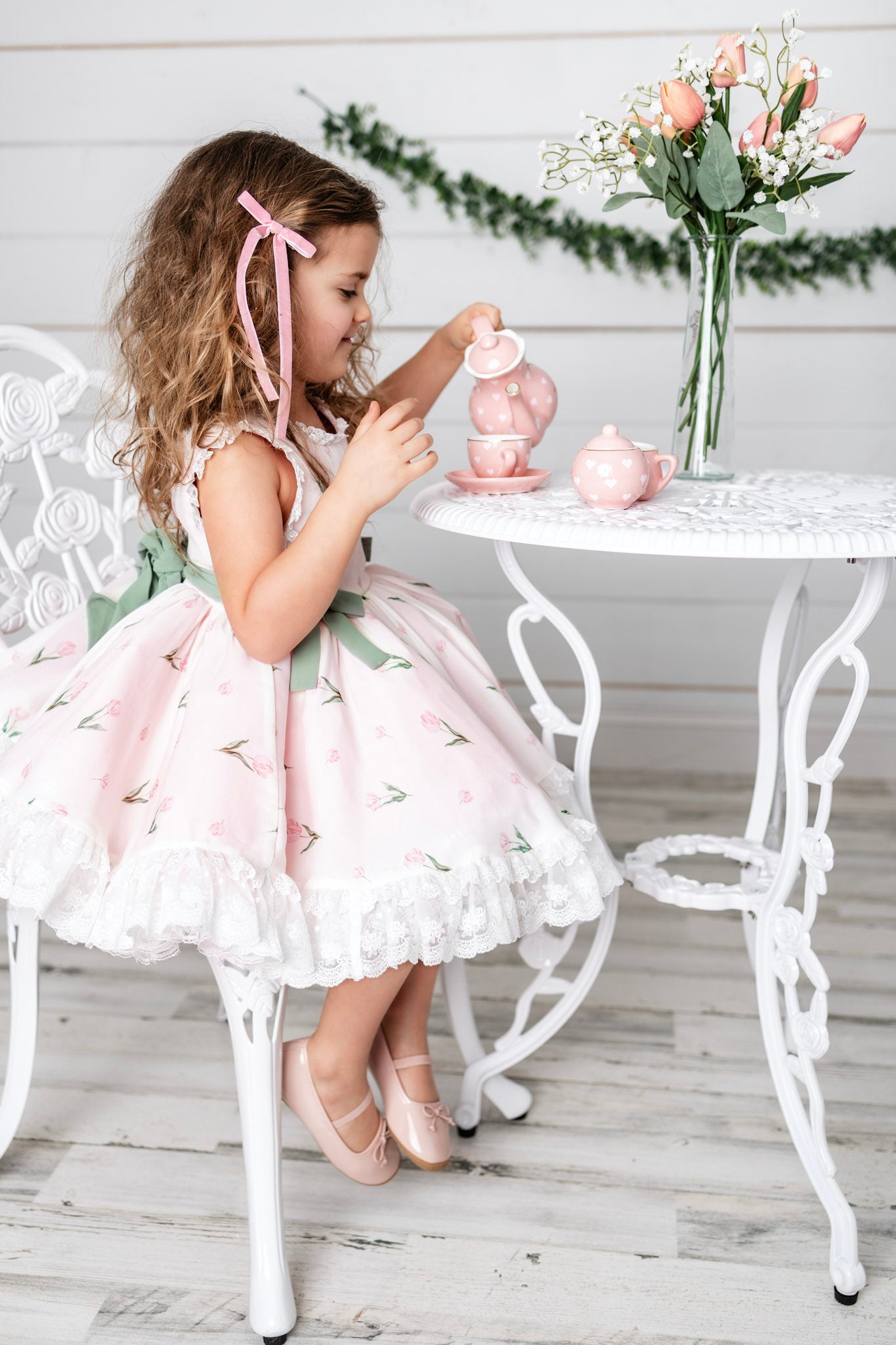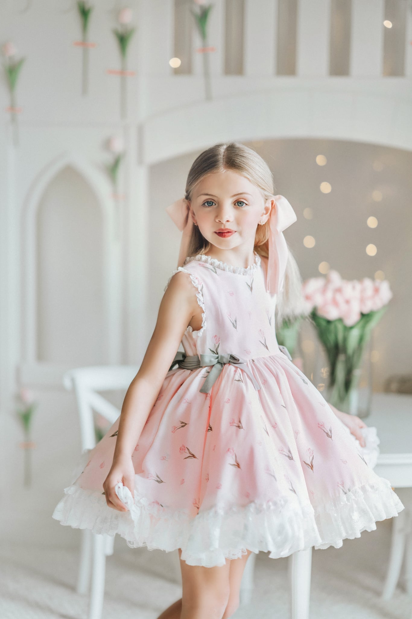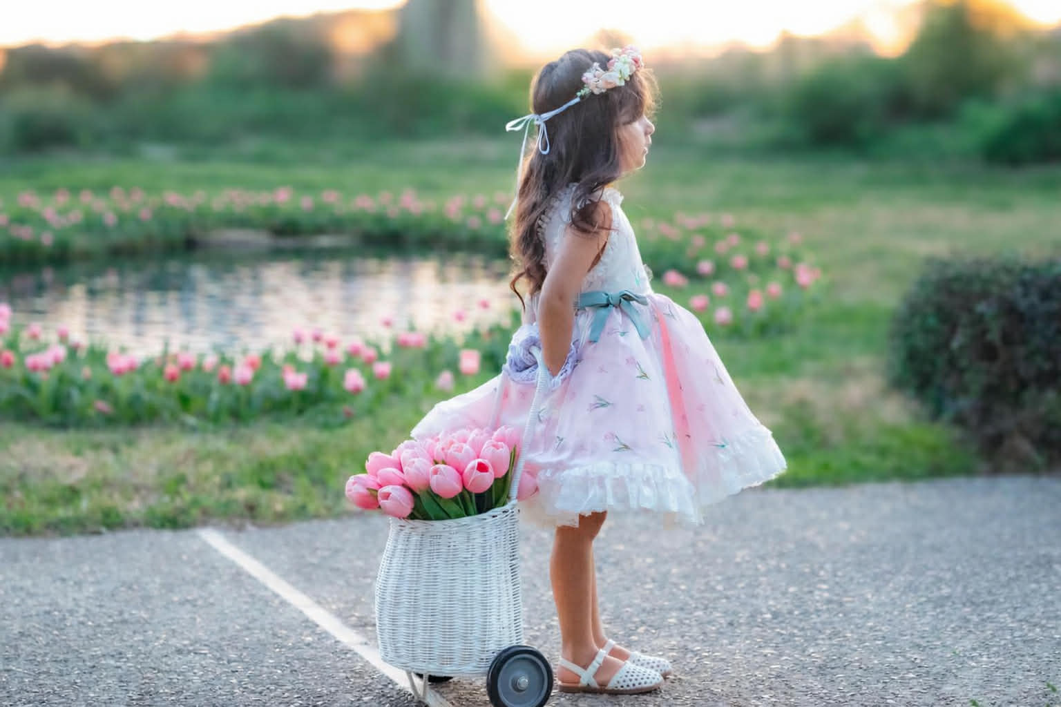 Tulips Garden Dress: Made of chiffon fabric. Bloomers included.